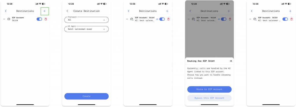- Add your mobile SIP account as a destination.