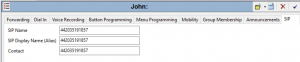 - SIP Name, Sip Display Name (alias), Contact: Caller ID you own