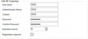 On the SIP Credentials Tab click Edit and uncheck Registration required