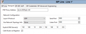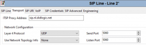 On the Transport Tab configure ITSP Proxy Address: sip.nl.didlogic.net (Secondary Regional SIP Gateway)