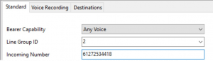 - Incoming Group, Outgoing Group: set to SIP Line number (1 in this example)