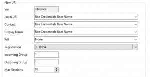 - Local URI, Contact, Display Name: choose Use Credentials User Name
