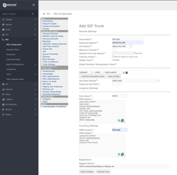 - Click Submit Changes and Apply Config to configure the trunk settings.