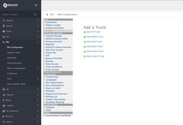 - Log in to the Elastix PBX Web Portal. In the left-hand menu, go to PBX Configuration