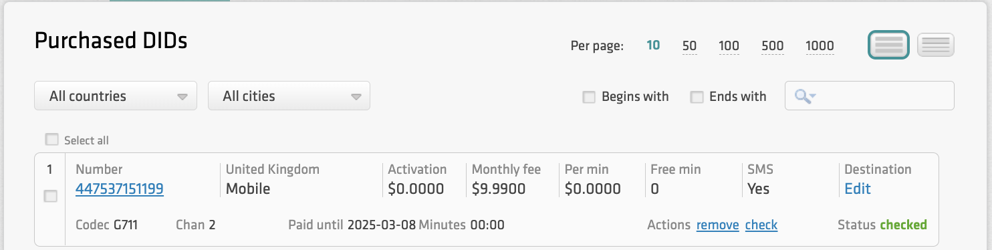 Purchase a number on the DID Logic platform