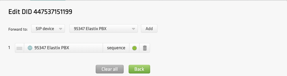 - Trunk Sequence: Select the SIP account created with DIDLogic