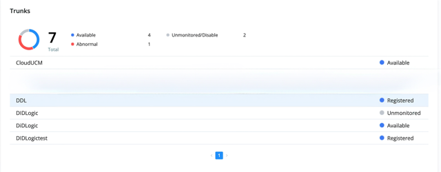 Once the Trunks are successfully registered, you will be able to see their status on the VoIP Trunks list page.