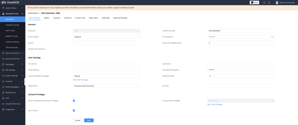 - Navigate to Extension/Trunk> Extension in the left-hand menu.
