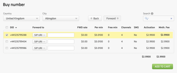 - Select the country and region where you wish to purchase a number