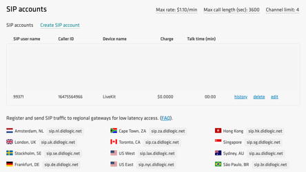 Create a SIP account on the DIDlogic platform
