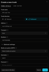 To create a new SIP trunk on the DIDlogic platform