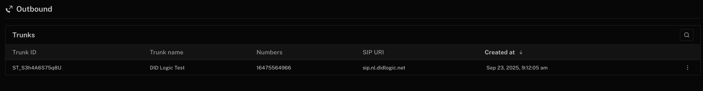 - Click Create, and your new trunk will appear in the Outbound trunks section.