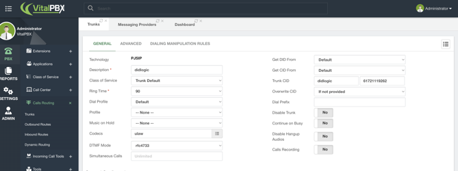 - Open your VitalPBX SIP Trunk settings -> “General Configurations and Outbound Registration Settings”