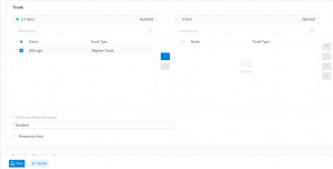 - In the Trunk section, choose the newly created SIP trunk and use the right arrow button to move it to the Selected section.