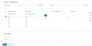 - Under Extension/Extension Group, select the extensions or extension groups that will use this outbound rule, and again, click the right arrow button.