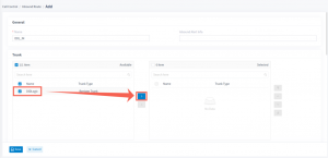 - In the Trunk section, choose the newly created SIP trunk and use the right arrow button to move it into the Selected section.